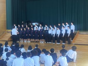 - 深川小へ歌声を届ける。11月初旬から中旬にかけて、深川小学校へ中学生の歌声を届けに行きました。10月の文化祭で開催した合唱コンクールの各学年金賞受賞学級が、昼休み時間に深川小体育館に出向き、合唱を披露していきました。写真は1年生の合唱風景です […]
