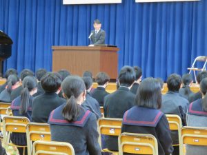 - 始業式後に110番教室実施1月8日(木)の始業式後、長門警察署の警察官が来校され、110番教室を開催されました。教室では、非常事態には迷わず110番に連絡することの大切さを教えていただくとともに、現地から動画を送って状況を知らせるシステムについて […]