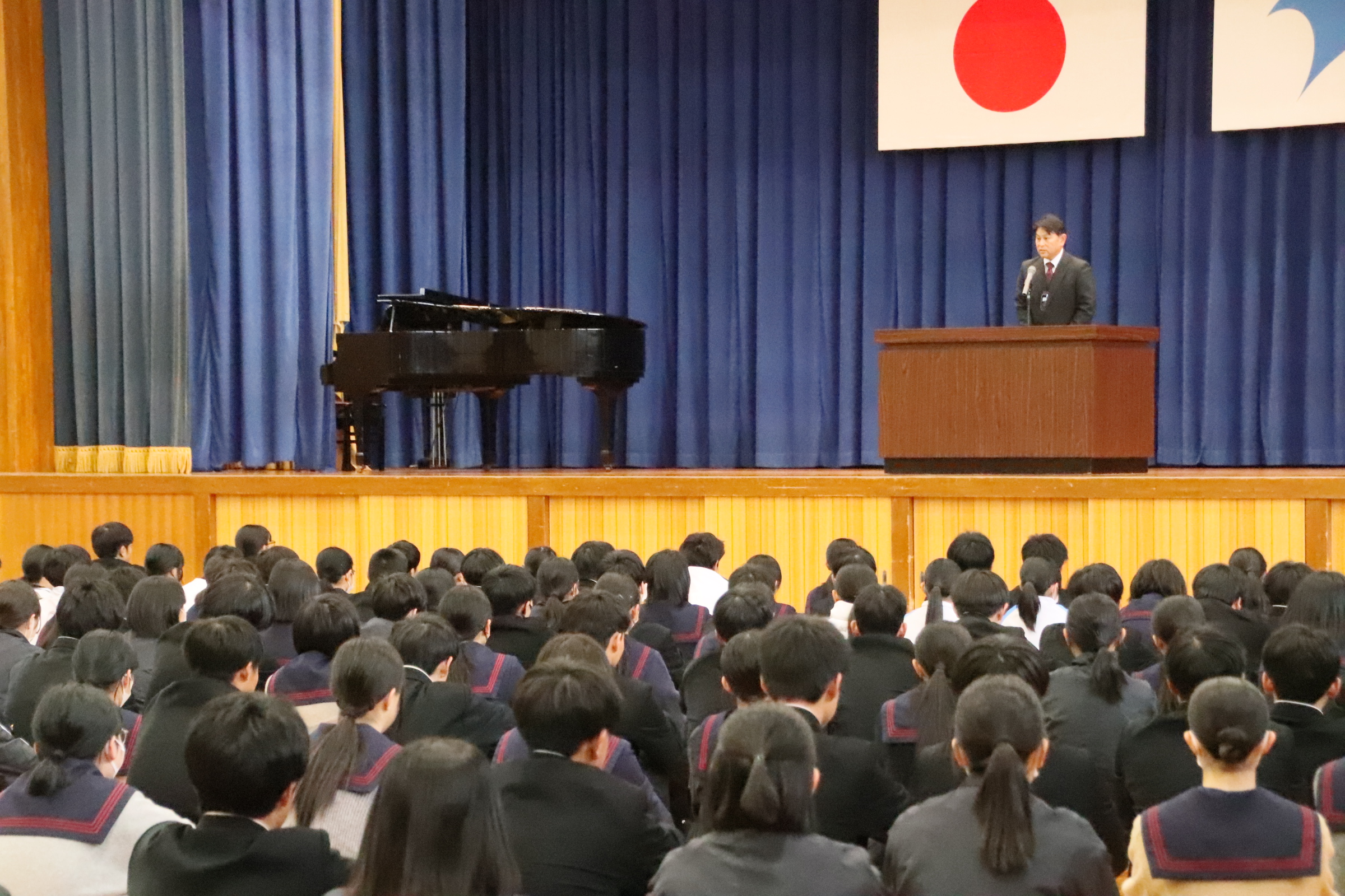 12月24日(水)、終業式を挙行しました。校長からの締めくくりの言葉として初詣に行く場合は、ぜひ「感謝の言葉を伝えよう」という話がありました。私たちは参拝するときにとかく「願いをかなえてください」というお願いばかりをしがち(例えると「請求書」)ですが、「今日までありがとうございました。これからも努力します」というような報告と感謝の言葉(例えると「領収書」)を伝えたいものだということです。皆様が、気持ちのよい新年が迎えられることをお祈りいたします。