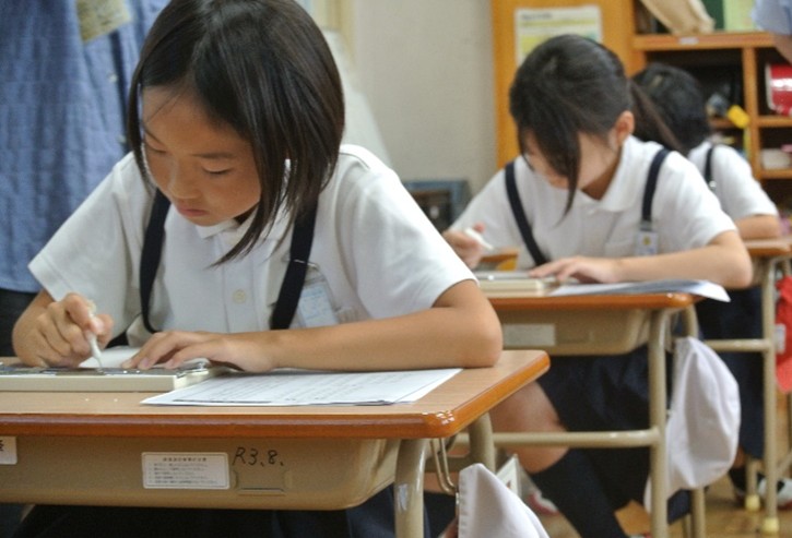先日、4年生が総合的な学習の時間に、点字について学びました。社会福祉協議会や点訳ひまわりの会のみなさんに来ていただき、点字の読み方やうち方を指導していただきました。子供たちが学習を振り返って、はじめは苦戦していましたが、あきらめることなく取り組み、自分の名前をうつことができたと発表したように、一生懸命取り組む姿がよく見られました。