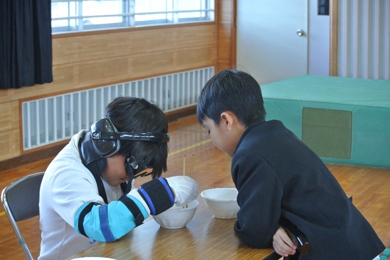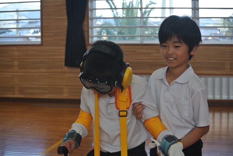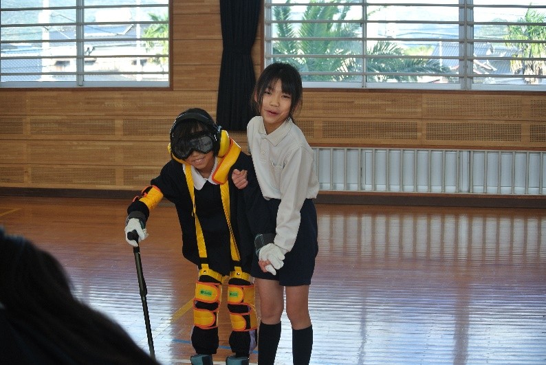 先日、4年生が社会福祉協議会の方などと一緒に車いす・高齢者体験を行いました。普段使わない車いすやなかなか体験できない高齢者の目線・体の重さなどを体験する機会となりました。子どもたちは、学習を楽しみながら大変さを理解していました。