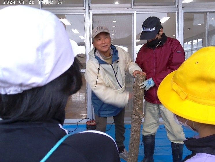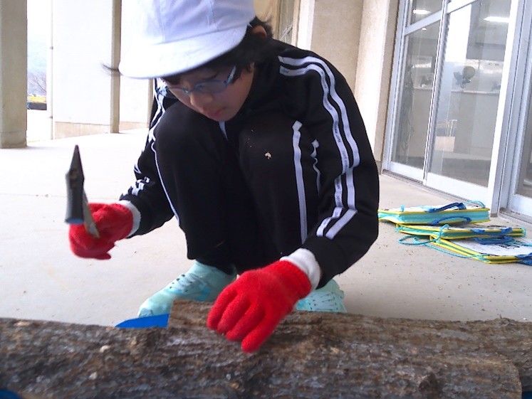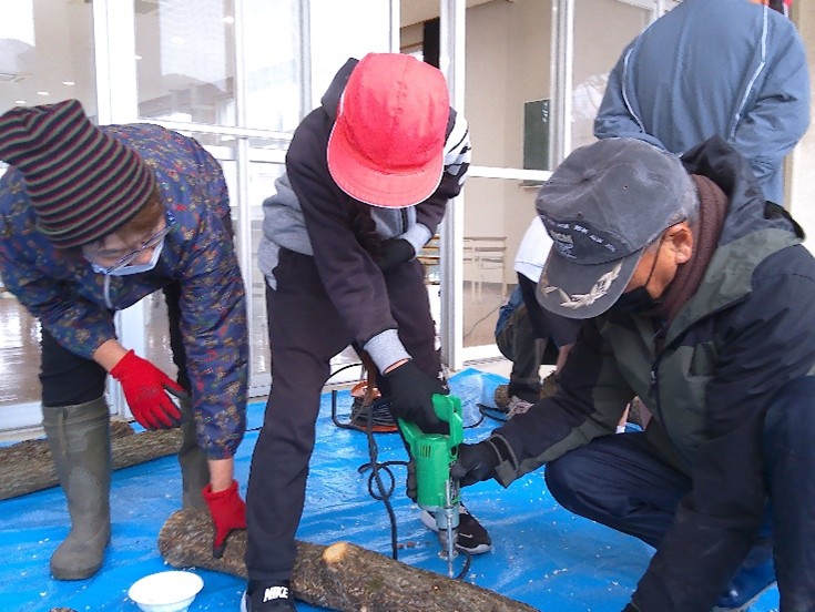 先日、三隅林業研究グループや山口県下関農林事務所の皆さんと一緒に4年生がしいたけの菌打ちを行いました。初めての原木やしいたけの駒、電動ドリルに目を輝かせ、意欲的に取り組んでいました。子どもたちは「駒をトンカチで打つのが楽しかった。」「ドリルで穴を開けるのが楽しかった。」と感想を述べていました。2年後に顔を出すしいたけが楽しみです。