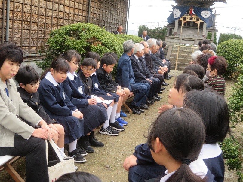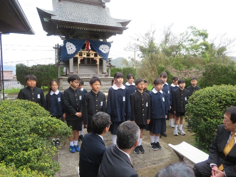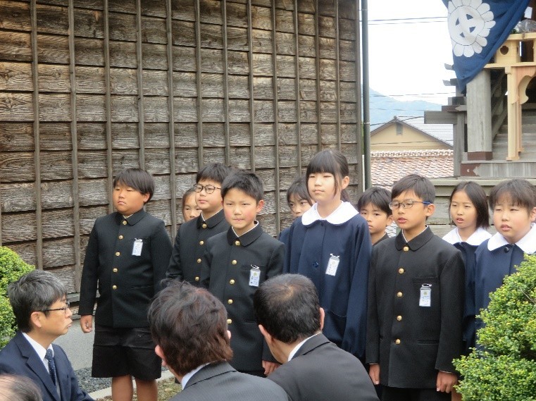 4.24 清風祭に参加! R8.4月 2026.04.25 先日、村田清風記念館で行われた『清風祭』に5・6年生が参加しました。来賓も多い中、子どもたちは緊張した面持ちで参加し、村田清風先生がつくられた『餐麦買弓』を立派に朗誦しました。