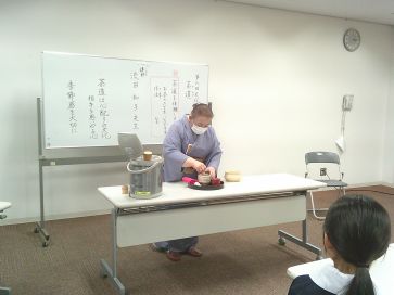 文化クラブ 茶道 写真で伝える深川っ子ニュース 2025.12.18 12月18日、文化クラブに取り組みました。お茶の点て方や、お茶をいただく時の作法を教わりました。茶筅を持ち、手首から先を早く動かしてお茶を点てることに苦戦しましたが、先生に教わりながらおいしいお茶を点てることができました。