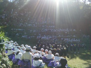 10月29日、赤崎神社の楽桟敷で、桟敷集会が行われました。今年のテーマ「届け私たちの長門愛♡」にし、桟敷に響き渡る呼びかけや歌声で、どの学年もすばらしい発表を披露することができました。これからも、深川小学校の伝統を未来へつないでいくために頑張っていきます。