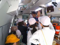 11月10・13日、3年生が社会の「くらしを守る」の学習で、長門消防署を見学させてもらいました。私たちの安全な生活を守るために、消防署のみなさんが日ごろどのようなことをしているのか、実際に道具を見せてもらいながら、お話を聞いて学びを深めしました。