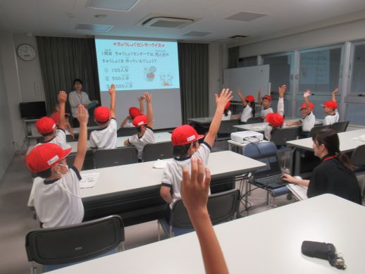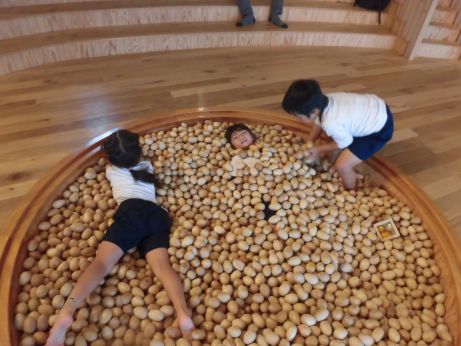 1年生は、10名の地域のおじいさん・おばあさんと一緒に竹とんぼ。地域の方が、子どもたちをはげましながら、竹とんぼ飛ばし。ゆったりと ほのぼのとした時間が流れました。1年生の最高滞空時間は、3.1秒。
