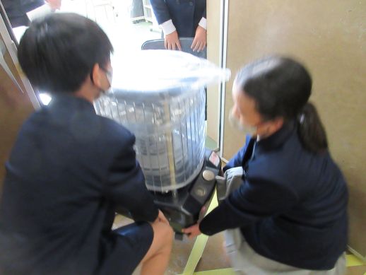 ストーブを設置。6年生がせっせと各教室に運んでくれました。ありがとうね。朝、交通指導をしていると、2年生の子どもから質問されました。「どうしてお昼あったかいのに、朝はこんなに寒いの?」って。
