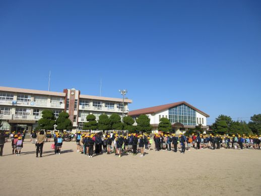 今年最初の集団下校。「さようなら」の声が、青空いっぱいに響きました