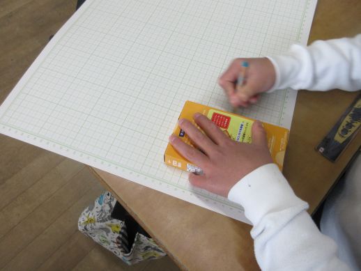 フラワーさんの教室をのぞくと、箱の面を調べる学習をしていました。教室中があたたかい雰囲気に包まれていました。