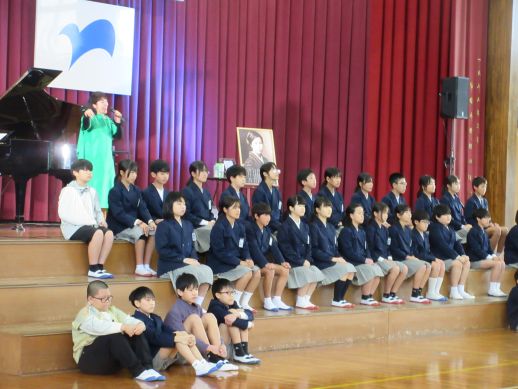 「宝のような時間でした…仙崎に生きる誇り、みすゞさんと大津あきらさんの母校で学ぶ、受け継ぐ誇りをもって、輝きながらこれからも紡いで歩んでほしい…」とシンガーソングライターのちひろさん。いつまでも いつまでも心の中に余韻の残る、言葉にできないほどの感動でいっぱいのステージでした。6年生の発表も見事でした。ちひろさんとのコラボも最高でした。6年生、ちひろさん、感動をいっぱいありがとうございます。