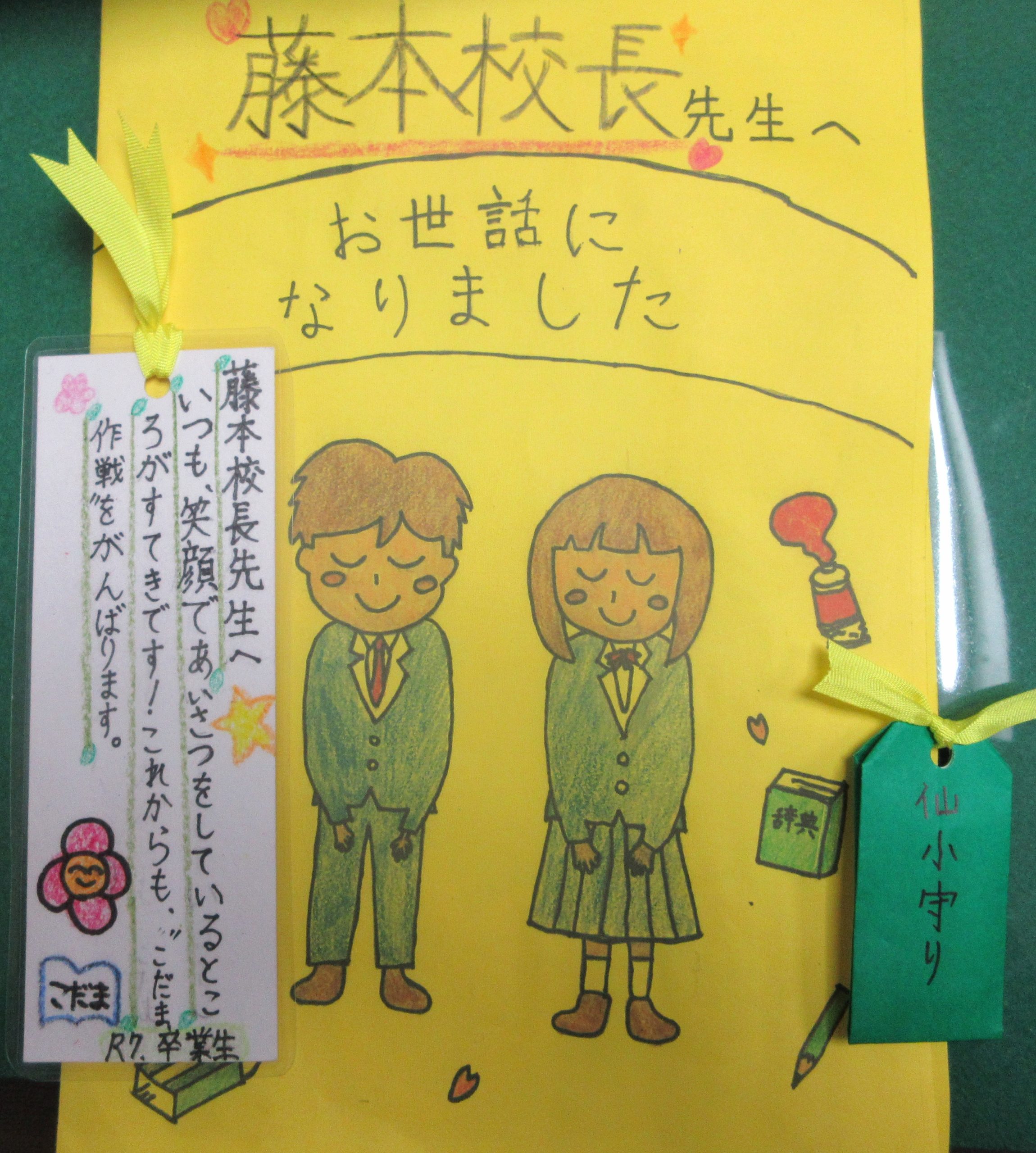 「こだま返しです」と6年生。届けてくれました、メッセージとしおりと、おまもり。3月になって涙もろくなっている私。大切にします。ありがとう。